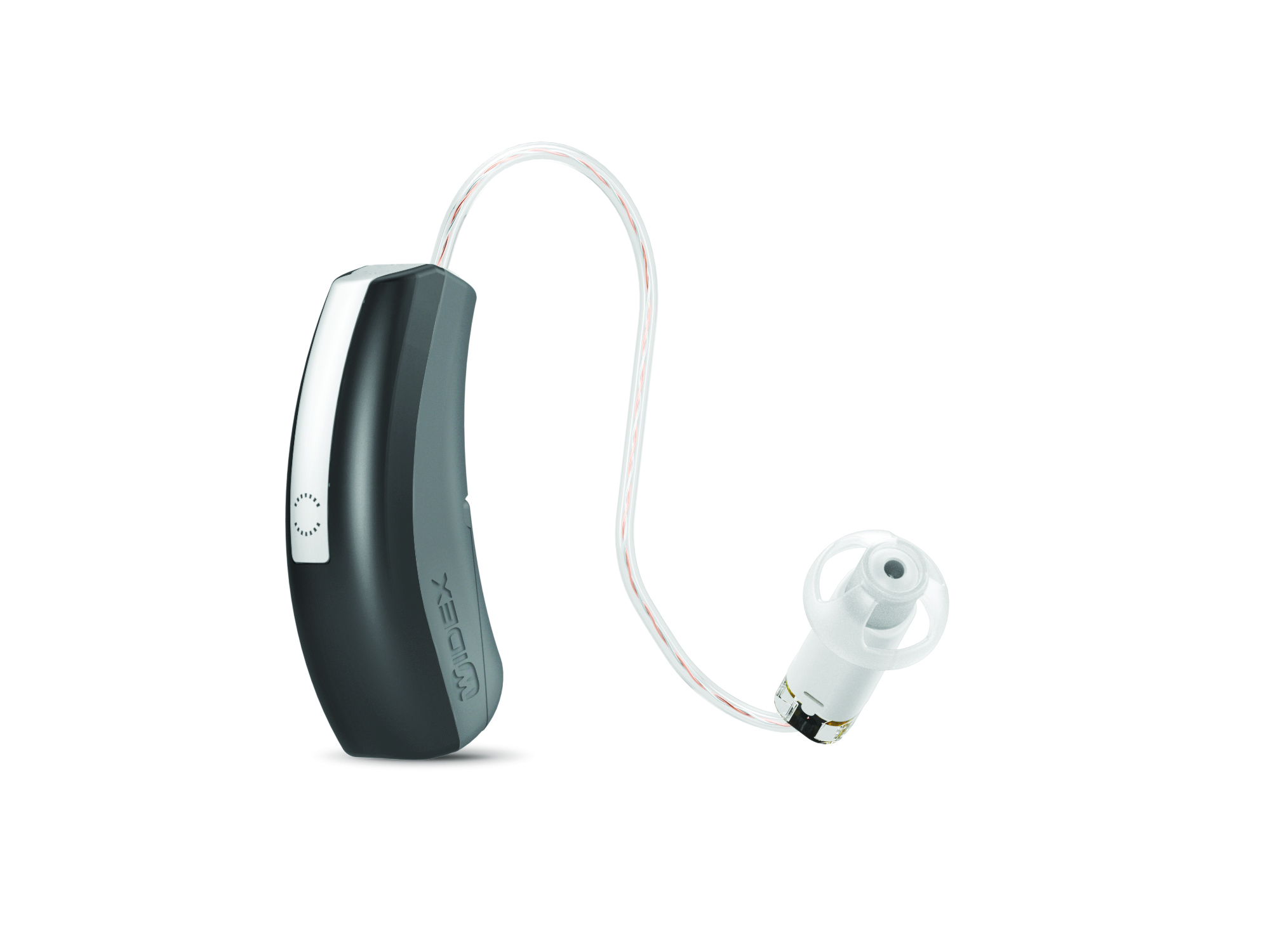 A micro device that fits behind the ear with a small receiver that goes in the ear canal. Small, discreet and quick to fit. Perfect for many first-time hearing aid wearers.Variety of color options available, easy to adjust. For mild to severe hearing loss. Effective in even the noisiest environments, comfortable in loud settings and quiet in quiet settings, and allows you to enjoy newly enhanced speech clarity.